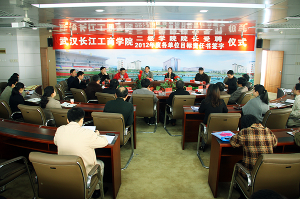 校长张金隆教授向6位院长颁发了聘书,并与他们郑重地签订了2012年度二级学院各项工作目标责任书。