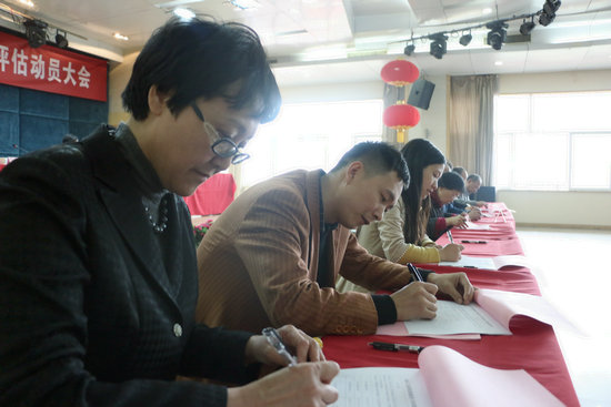图为各职能部门责任人在现场签订任务书 摄影:谢伟