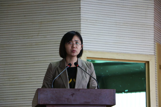 图为文学法院副院长范红霞作为二级学院代表发言 摄影:谢伟