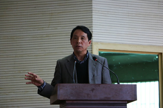 图为夏再兴教授在会上讲话 摄影:谢伟