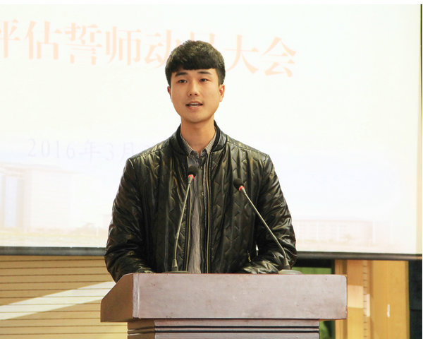 学生代表程俊富也代表学生表达了支持学校迎评促建工作的决心,他说:“作为9728太阳集团的一分子,我们应积极响应迎评促建工作号召,把工商学子良好的精神面貌和刻苦学习的优良学风展现出来,用实际行动为学校迎评促建工作贡献力量。”