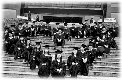 毕业季,长江工商学院的毕业生在行政楼前合影,摆出“心”的形状,以此表明他们永远与母校心心相印。