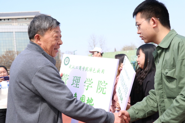 植树节活动开始前还举行了“绿色校园”责任区授牌仪式,学校领导为各个学院划分了绿化责任区,并进行授牌。