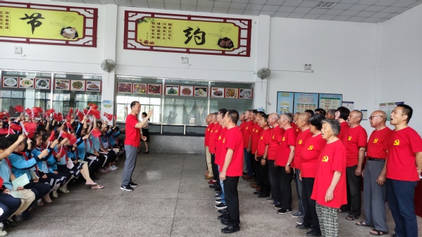 讲座结束后是演出环节。马林村全体党员激情澎湃地歌唱《没有共产党就没有新中国》《社会主义好》等令人热血沸腾的红歌;张黄小学工会主席梁圣柏朗诵经典《红船,从南湖启航》,响亮浑厚的声音、饱含深情的朗诵让现场观众仿佛穿越时空,来到建党之初;张黄小学的学生们则带来《闪闪的红星》《我们是共产主义接班人》等精彩表演,孩子们通过的歌声表达出爱国爱党的炽热情感;大合唱《歌唱祖国》斗志昂扬、气势磅礴,为本次活动画上了圆满的句号。