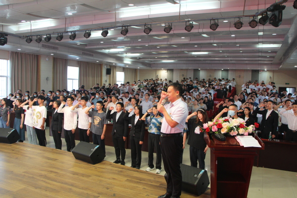 图为刘生元书记带领全体人员重温入党誓词 摄影:李洋洋