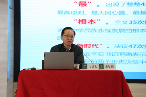 李学锋紧紧围绕“深刻认识总结党的百年重大成就和历史经验的重大意义”“深刻认识党的百年奋斗的初心使命和重大成就”“深刻认识中国特色社会主义新时代的历史性成就”“深刻认识党的百年奋斗的历史意义和历史经验”“深刻认识以史为鉴、开创未来的重要要求”“从党的百年奋斗历程中汲取智慧和力量”这六个部分,对全会精神进行深入阐释和专题辅导。