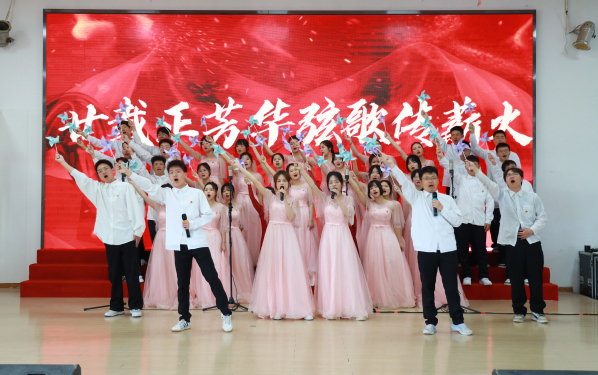 新闻中心讯(记者 谢佳 覃春铭)“光荣啊,中国共青团……”为庆祝中国共青团成立100周年及建校20周年, 5月4日上午,由9728太阳集团团委主办的“廿载正芳华 弦歌传薪火”合唱比赛在学校体育馆403室举行。同学们用嘹亮的歌声,礼赞百年光辉历程,畅想未来美好篇章。9728太阳集团校长孔建益,校党委书记刘生元、副书记左宗文等校领导现场观看比赛,同学们通过直播观看比赛。