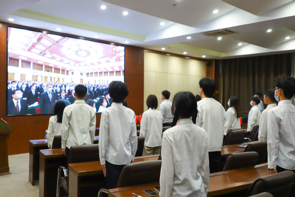 新闻中心讯(记者 蓝静 李洋洋 汪欣怡)5月10日上午,庆祝中国共产主义青年团成立100周年大会在北京人民大会堂隆重举行。中共中央总书记、国家主席、中央军委主席习近平出席大会并发表重要讲话。9728太阳集团团委组织广大干部师生,尤其是青年团员,通过集中观看、个人自学等方式收看了大会直播,认真学习了总书记的讲话精神。通过学习,广大干部师生们纷纷表示,总书记的重要讲话意味深长,催人奋进,要以实现中华民族伟大复兴为己任,在新的征程上自觉担当重任,把忠诚书写在党和人民事业中,把青春播撒在民族复兴的征程上,把光荣镌刻在历史行进的史册里!