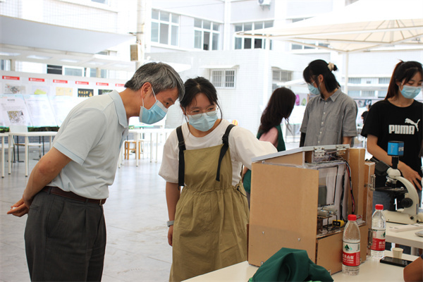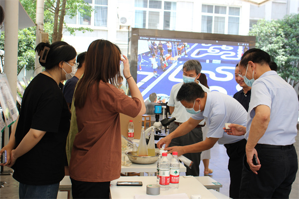 6月10日——17日,在学校艺术楼中庭举办的第二届科技展示周活动上,来自各学院的学生们晒出了他们的80件科技创新作品,吸引了不少师生驻足观看。13日,学校校长孔建益、党委书记刘生元等领导也来到现场观看学生们的作品。