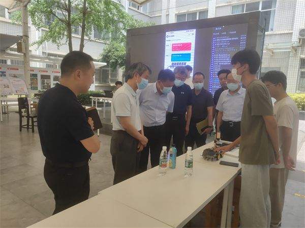 图为校领导参观智能小车现场演示 摄影:朱剑玫