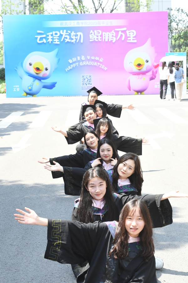 图为毕业生合影留恋 摄影:蓝静 孙欢欢 胡毅 苏古润