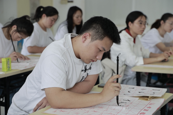 图为学生练习书法 摄影:芮雨欣