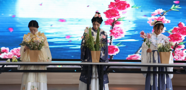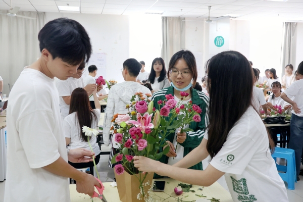 图为学生练习插花 摄影:杨小婷