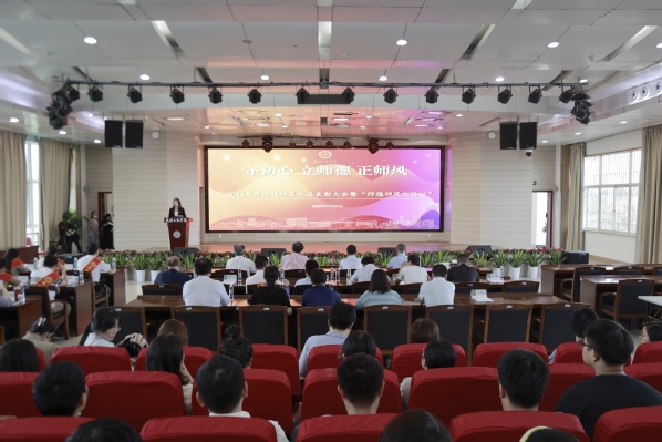 会上,刘生元书记宣读了《关于2022—2023学年师德师风先进集体和个人表彰决定》。左宗文副校长为师德师风先进集体颁奖;幸福堂副书记为师德师风先进个人颁奖。