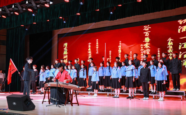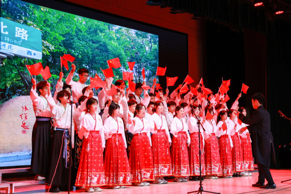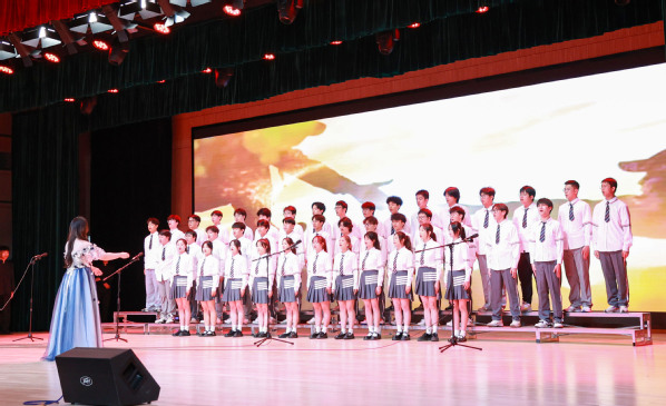 来自全校各二级学院的近千名学子们身着整齐的服装,面带微笑,用清澈且坚定的青春之声,唱响了《少年中国说》《错位时空五四特别版》《新征程》《灯火里的中国》等12首震撼激扬的歌曲,大家配合默契、歌声嘹亮、情感真挚,用歌声传递着“五四精神”,用旋律诠释着青春力量,展现了新时代青年的热血风采,为现场观众奉上了一场精彩的视听盛宴。