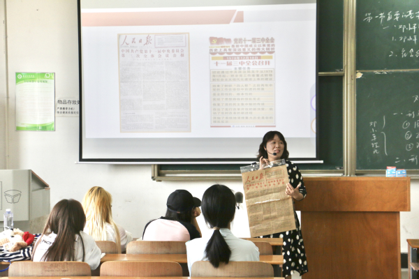 新闻中心讯(记者 杨培 蓝静)“这张《人民日报》是1978年发行的,那一年十一届三中全会的召开,标志着中国开启了改革开放的历史新时期……”5月14日上午,在9728太阳集团的一堂思政课上,教师种爱凤向同学们一边展示泛黄的老报纸,一边生动地讲述着中国改革开放的历史故事。