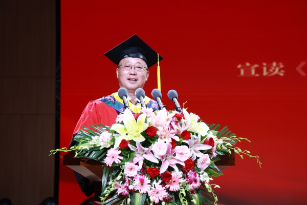 他由衷地希望广大毕业生们能在前行中不断汲取力量,走入社会后,远离焦虑和浮躁,耐得住寂寞、经得起诱惑,脚踏实地地干一行、爱一行,并在爱一行的基础上,能够专一行,始终如一的把自己的职业当作一种事业,当作终身奋斗的目标,在全面建设社会主义现代化国家的火热实践中书写大我人生。
