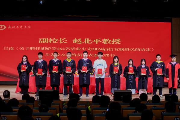 赵北平副校长宣读了《关于聘任胡娇等162名毕业生为2024届校友联络员的决定》,并为校友联络员代表颁发聘书。