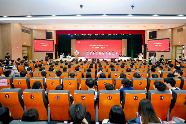 “四年来,我们见证了武工商日新月异的发展,武工商也承载了我的奋斗与汗水,锻炼了我的意志与担当。”文法学院2024届的学生叶思倩作为毕业生代表发言,她感恩母校对她的辛勤栽培,同学、朋友、家人对她的支持鼓励,感谢大学期间努力奋斗的自己。即将告别熟悉的校园,她向广大毕业生提出倡议:“愿大家在前行的道路上不驰于空想,不骛于虚声,不改本色,坚守自我,趁着风华正茂,把理想一寸一寸地种进现实。”