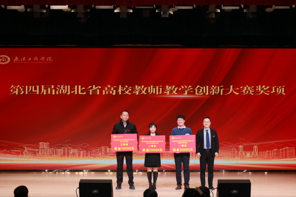 图为张俊副校长为第四届湖北省高校教师教学创新大赛奖项获奖教师颁奖 摄影:芮雨欣