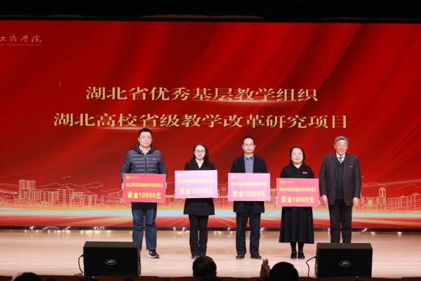 图为桂裕清副校长为湖北省优秀基层教学组织、湖北高校省级教学改革研究项目负责人颁奖 摄影:芮雨欣
