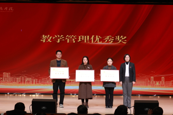 图为亓小林教授为教学管理优秀奖代表颁奖 摄影:芮雨欣