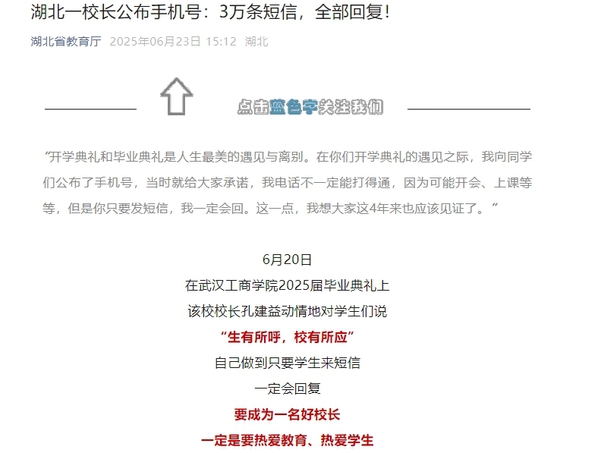 湖北省教育厅微信公众号:湖北一校长公布手机号:3万条短信,全部回复!