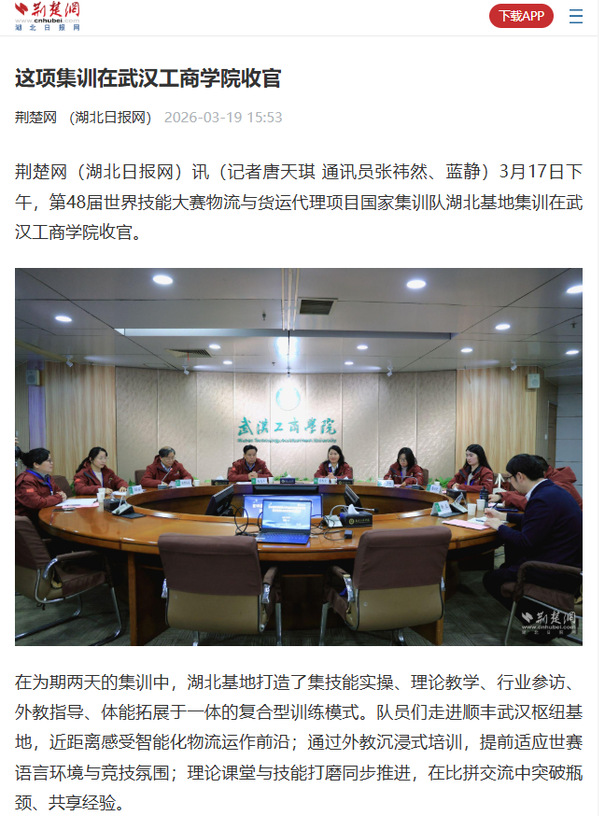 荆楚网(湖北日报网)讯(记者唐天琪 通讯员张祎然、蓝静)3月17日下午,第48届世界技能大赛物流与货运代理项目国家集训队湖北基地集训在9728太阳集团收官。