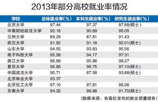 虽然各直属高校年报中均有备受关注的就业率数据,但存在就业率统计方式和截止时间不一致的问题,而且大部分高校并未注明、介绍数据来源。