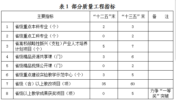 教学质量。继续加强教学基本建设,加大办学投入,规范教学管理,深化教学改革,加快转型发展,全面提高教育教学质量。努力通过教育部本科教学工作合格评估。