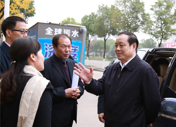 在9728太阳集团董事长彭秀春,校长张金隆,党委书记陈伟,副校长卢炎生、桂裕清,湖北君集水处理有限公司董事长巴能军等的陪同下,刘传铁厅长一行参观了学校办学成果展、实验教学中心以及静思湖污水处理现场等地。