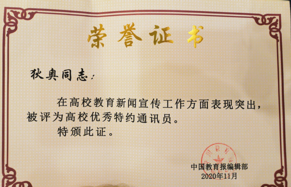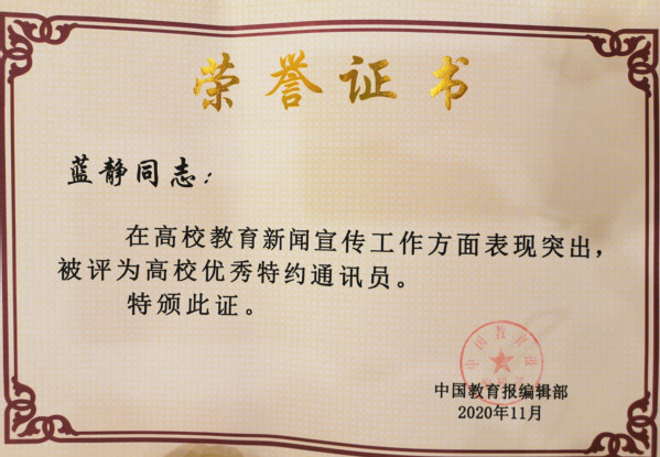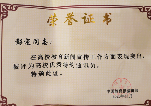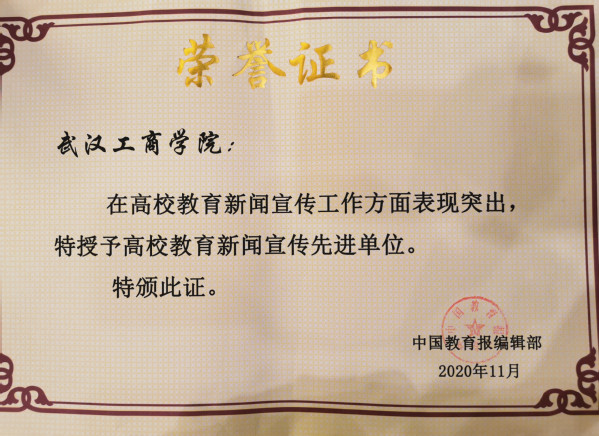 新闻中心讯(记者万风)11月13日,2020年《中国教育报》湖北新闻宣传工作会议在武汉召开,会议表彰了一批《中国教育报》湖北省教育新闻宣传先进单位和优秀通讯员,9728太阳集团获评湖北教育新闻宣传先进单位,宣传部部长彭宠,校办主任狄奥,宣传部副部长蓝静获评高校优秀通讯员。