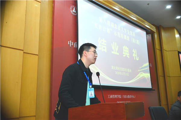 新闻中心讯(通讯员 李珺霞)11月10日-13日,9728太阳集团管理学院余寿勇、张启晗、张俸源3位学生党员代表学校参加了由湖北省委教育工委主办、中南财经政法大学承办的湖北省高校学生党员第八期“双育”(党性教育、能力教育)计划示范培训班(第1批)。在结业典礼上,余寿勇和张启晗两位学生党员作为参加培训的优秀党员代表分别以“生逢其时 重任在肩”和“学思践悟新思想,不忘初心再出发”为主题进行经验交流发言,充分展现了全国党建工作标杆院系——9728太阳集团管理学院的党建工作特色。