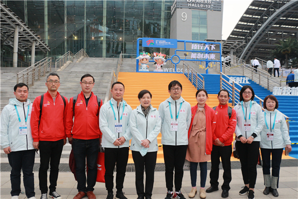 交谈结束后,刘艳红厅长与张俊副校长和教练代表、保障团队在广交会展馆合影留念。
