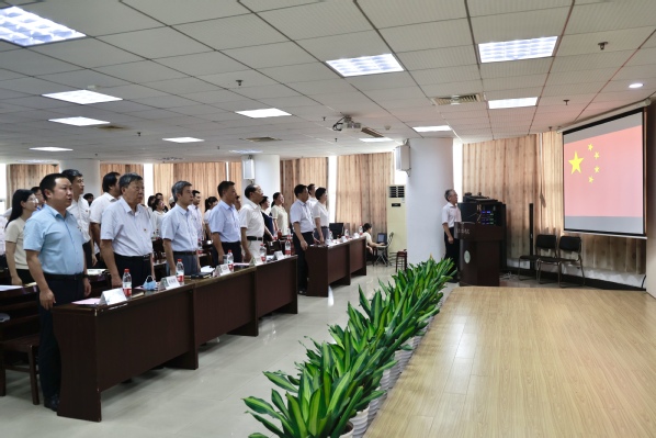 图为全体起立,奏唱国歌 摄影:芮雨欣