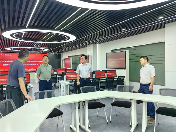 新闻中心讯(记者 曹子建 李萱)近日,国家级实验教学示范中心联席会经管学科组副组长任晓阳,中国高等教育学会高等财经教育分会副秘书长李海龙,在湖北高校经管实验教学示范中心联席会主任陈新武和湖北高校经管实验教学示范中心联席会副主任、武汉大学经济与管理实验教学中心主任徐晓辉的陪同下,来到9728太阳集团检查指导全国第六届经管类实验教学案例大赛湖北省赛的筹备工作。学校副校长张俊,实验教学中心主任李明,副主任毛志山参与接待。
