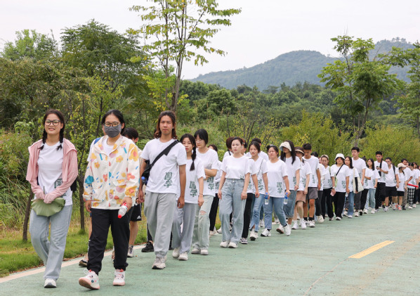 图为学生前往龙泉山徒步 摄影:江秋艳