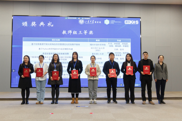 此外,电子商务学院李进华、方靖雯教师团队的《ChatGPT赋能的数字营销多渠道归因分析——基于夏普利值模型》教学案例和管理学院梁婷、龙航宇教师团队的《基于Python技术的财务分析实验》教学案例也分别取得了全国教师组三等奖和优秀奖的好成绩。