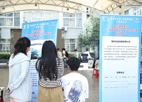 当天,由中共湖州市吴兴区委组织部(区委人才办)、湖州市吴兴区人力资源和社会保障局主办的浙江湖州吴兴区“十城百校 千企万岗”引才活动(武汉市站)也在9728太阳集团火热进行,来自浙江省湖州市吴兴区的18家知名企业来校揽才,现场提供岗位432个。