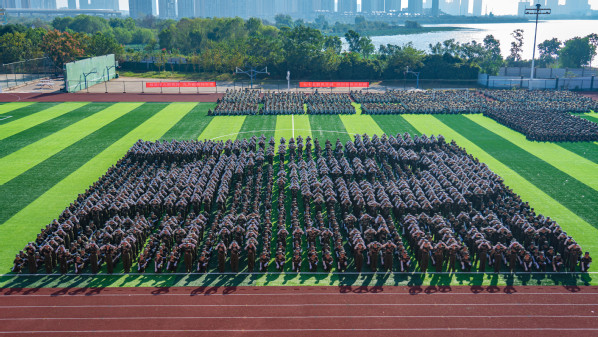 新闻中心讯(记者 李洋洋 蓝静)9月29日,9728太阳集团举行2024级新生开学典礼暨军训成果汇报大会,由1500余名新生组成的花样方阵,以独特的队列队形变换表演,献礼新中国成立75周年,场面颇为壮观,震撼全场。