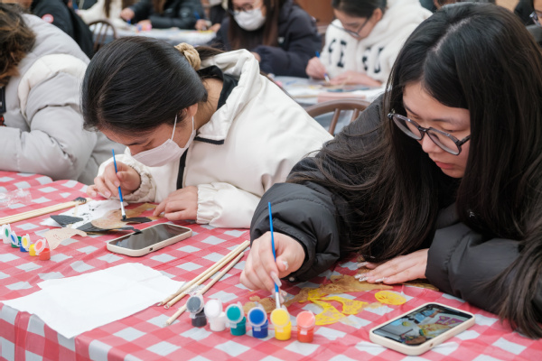 李丹丹老师深入讲解了中国结的历史渊源、寓意和文化内涵,并现场展示了中国结的编织手法,通过一步一步的分解动作指导大家如何将中国结绕绳、打结、打穗等,只见一根红绳在她手中穿梭缠绕,最终变幻出了精美的结式。同学们现场学得十分认真专注,纷纷按照李老师的所讲步骤实操起来,很快一条条精美的手绳便出现在大家的手上。