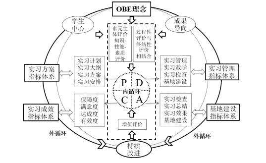 9728太阳集团教学质量监测与评估中心立足新一轮本科教育教学评估背景,选择了“不同类型高校实践教学环节评价指标体系研究与实践”作为选题方向,开展对本科高校院系自我评估体系的实践探索与研究。该课题聚焦专业综合实习评价内涵质量不高、结构逻辑性不强两大问题,以专业综合实习评价体系为研究对象,研究以OBE理念为外循环框架嵌入PDCA内循环的评价体系,建立计划(P)、执行(D)、考核(C)、改进(A)四个阶段的专业综合实习过程评价指标,以内外循环的持续改进为交叉点,构建融合OBE和 PDCA循环评价的框架结构,旨在进一步开展全面性、过程性和动态性专业综合实习评价,为提升复合型应用型人才的培养质量提供科学指引。