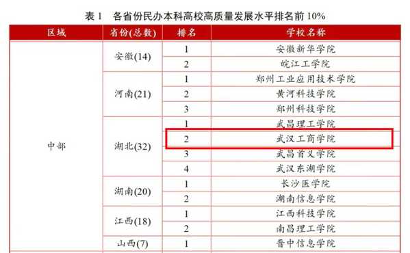 学校的综合实力、办学成效得到了社会各界的广泛认可,在各类排名中表现突出:在艾瑞深中国校友会网公布的排行榜中,学校位居2025中国工商类民办大学榜首和2025中国民办大学排行榜第5位,荣膺2025中国顶尖应用型大学;在2025软科中国大学排名中,学校位列民办财经类高校全国前三、湖北省第一。
