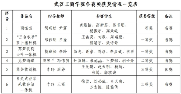 经过精心培训、选拔,9728太阳集团共派出了6支队伍、40余名师生参赛,与来自武汉大学、华中科技大学等名校学生同台竞技,竞争非常激烈。面对强劲对手,武工商学子沉着冷静,充满自信地在现场演示设计的作品模型,并回答评委们的提问。最终,《顶呱呱》《“三合农耕”萝卜播种机》《莴笋收割去叶一体机》3件作品凭借出色的创新设计、优良的工作性能喜获省赛一等奖。