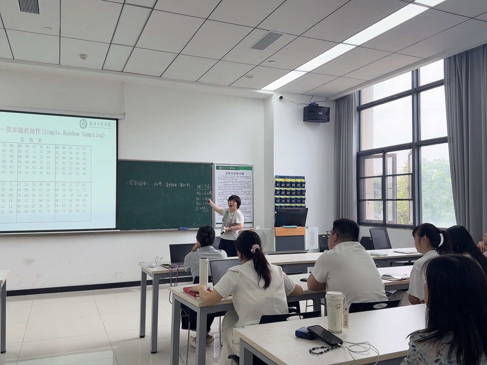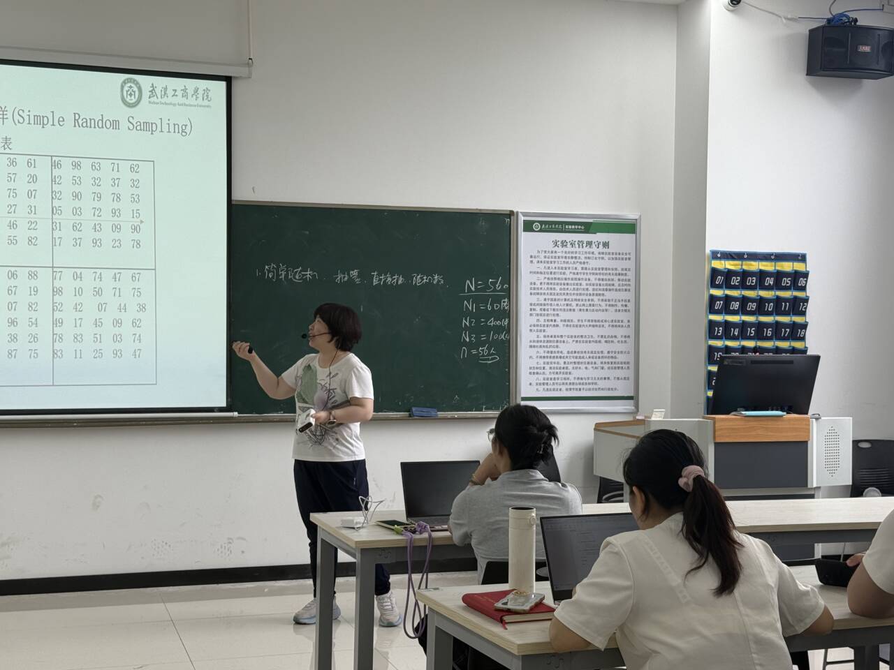 胡桂成老师以“抽样设计”为主题开启示范教学。课堂上,胡老师结合多年教学与实践经验,系统梳理了抽样设计的理论框架,通过典型案例剖析,深入浅出地讲解了抽样方法的应用逻辑与关键技术要点。他通过模拟科研项目场景,现场演示抽样方案的设计流程,并与在场教师展开互动研讨,引导大家思考如何将抽象的统计知识转化为清晰易懂的教学内容。胡老师严谨的学术思维与生动的教学语言,充分展现了理论教学与实践指导的融合技巧。