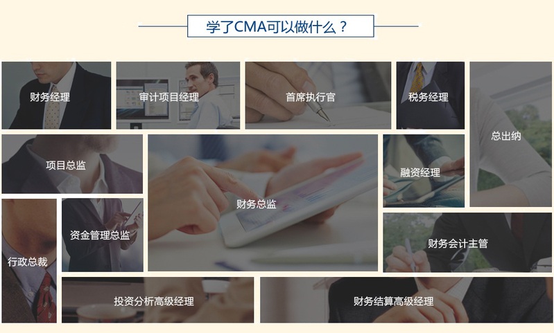 CMA认证就是为了服务更多的世界500强企业、跨国企业或外资企业财务高管参与企业决策、战略制定、企业风险控制和企业业绩提升。CMA会员就职企业大致分为三类:第一类如宝马、微软、奥姆尼康、强生、卡特彼勒、摩托罗拉等世界500强公司的战略决策、集团CEO等;第二类如拜耳集团、霍尼韦尔等知名外企的财务CFO、CEO等;第三类如中国银行、中国石油、中核集团、国家电网等央企内部审计、分线分析等职位。