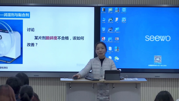 新闻中心讯(记者 孙欢欢 邓念锡)“这组同学提出的‘双氢青蒿素片’处方优化方案很好,还可以进一步尝试对药品的制备工艺进行优化。”“大家推进项目任务的过程中,要去思考和探索如何在保证药品安全有效的同时,优化制备工艺降低生产成本,提高药品的市场竞争力。如何改良处方,提升制剂的稳定性。”