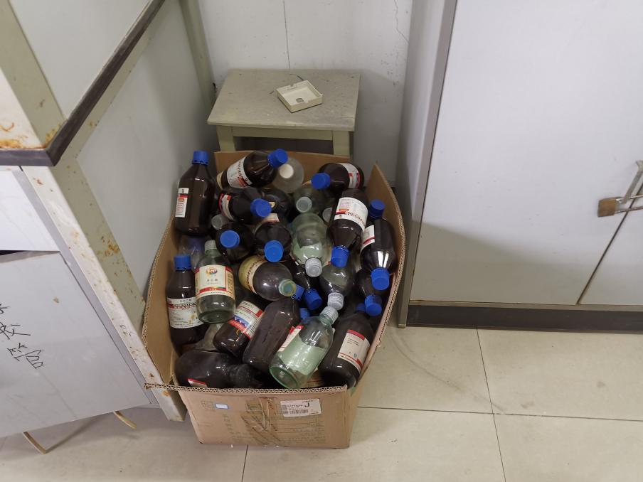 环境与生物工程分中心:3-123化工原理实验室,气瓶没有固定,闲置气瓶较多;3-511有机实验室废玻璃瓶堆积过多,需要向危废暂存间转移;5楼走廊地砖破损,已经联系后勤待维修。