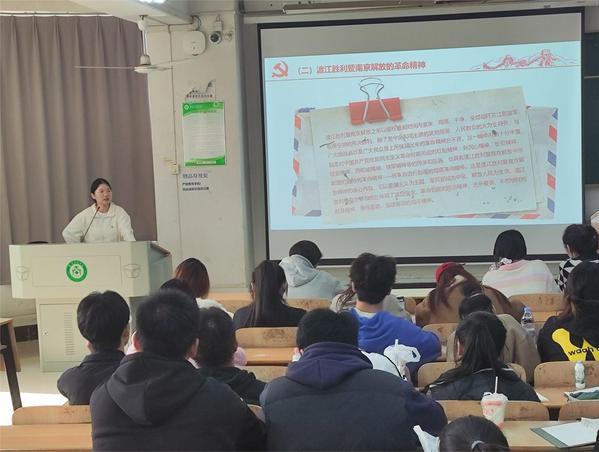 本站讯(通讯员:许津津摄影:陈军任星)2023年11月23号中午12:30,环境与生物工程学院第十七届党校党课第三讲在综合楼307如期举行,本次党课由环境与生物工程学院学生党支部书记何丹老师主讲,主题为《传承渡江精神,庚续红色基因》,参加本次党课培训的有全体在校党员,预备党员,发展对象以及入党积极分子。
