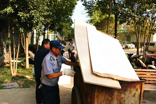 图为保障部正在清理废旧物品 摄影:吴建涛